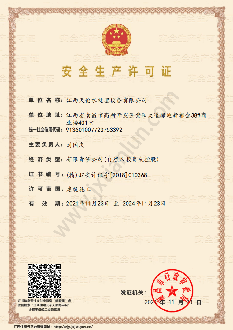 2005年:天倫進入高新開發區留學生創業園,進入快速發展階段,成立江西天倫水處理設備有限公司